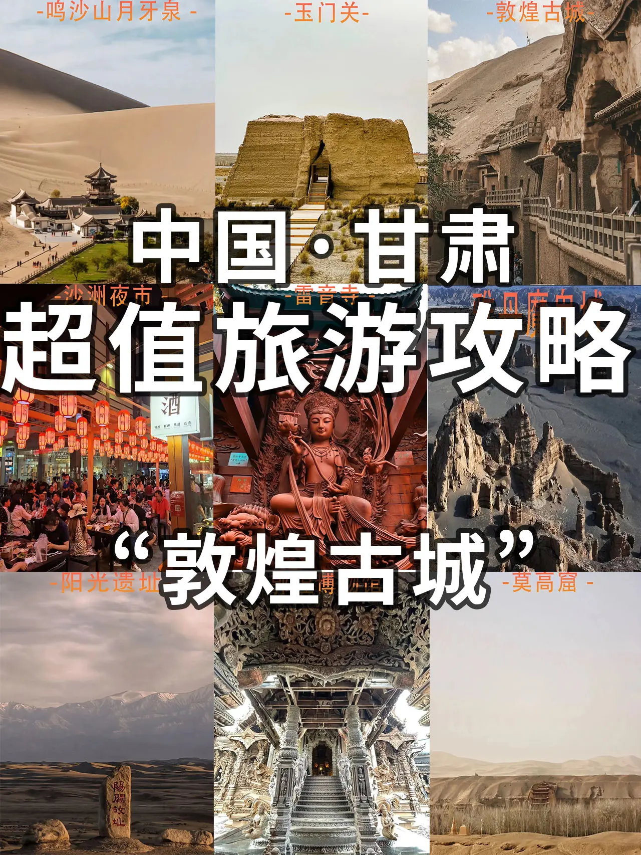 甘肃,位于中国的西北地区,是一个充满文化和历史的省份。这里地形多样,有大漠、草原、山地等多种自然风光,如鸣沙山、月牙泉、峡谷风景线等景点都让人流连忘返。这里也是丝绸之路的重要节点,有着悠久的历史和文化底蕴,如敦煌莫高窟、麦积山石窟等让人感叹古人智慧的创造力。此外,甘肃还是中国少数民族聚居地之一,有着独特的民族文化和美食,如羊肉面、牛肉面、马蹄糕等,让人垂涎欲滴。来到甘肃,你会被这里的美景和文化深深吸引,一定会有美好的旅行体验。