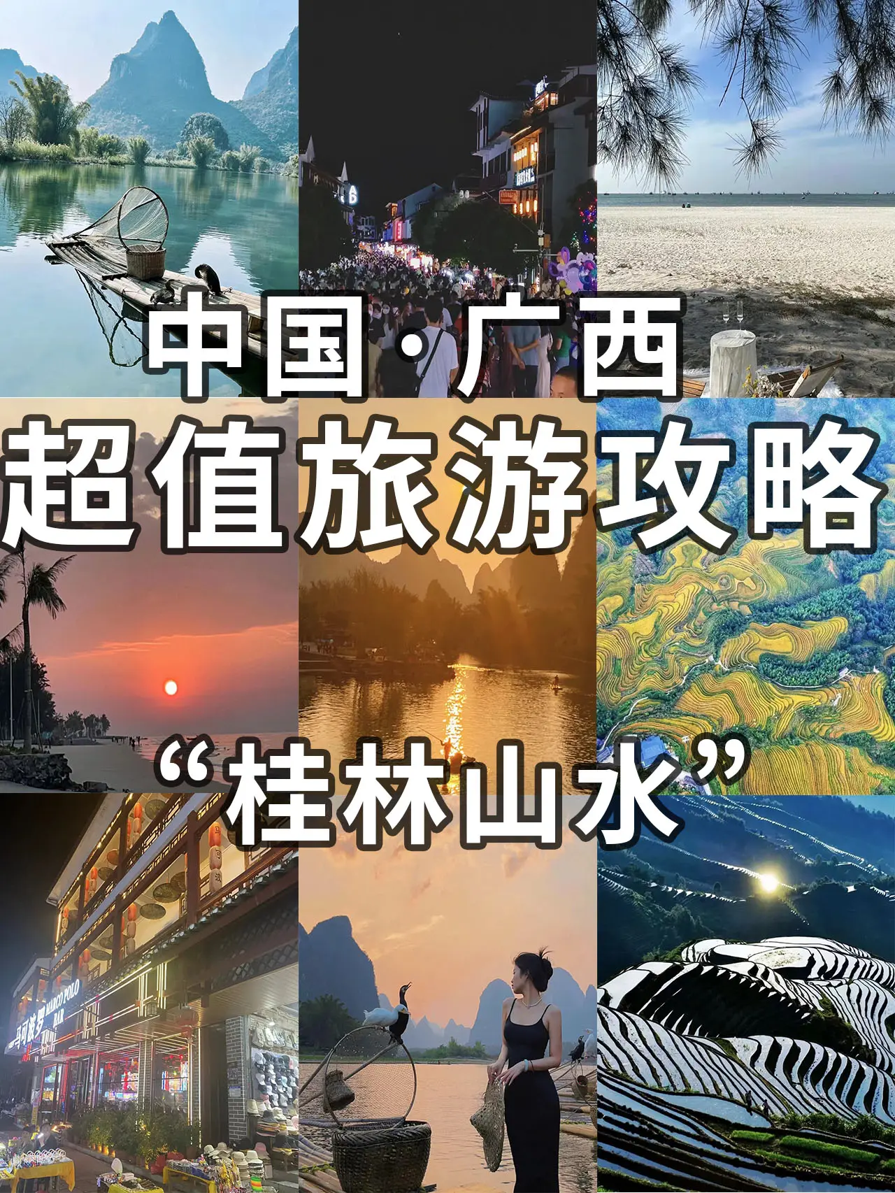 广西,一个充满异域风情的地方。这里有独特壮乡、侗乡、瑶乡文化,还有如画的漓江山水和壮美的龙脊梯田,是摄影爱好者的绝佳拍摄地。广西还是中国重要的海上丝绸之路节点,这里的特色美食更是让人垂涎三尺,桂林米粉、螺蛳粉、鸡腿饭等都是不可错过的美食选择。广西还有海岛国家森林公园,可以一边欣赏美景一边放松身心。此外,广西还有丰富的文化遗产,如南宁青秀山古庙、北海防城港大佛等都值得一看。来到广西,你会被这里的美景、美食和文化深深吸引,一定会留下美好的回忆。